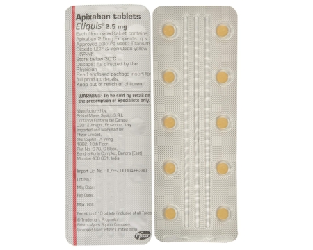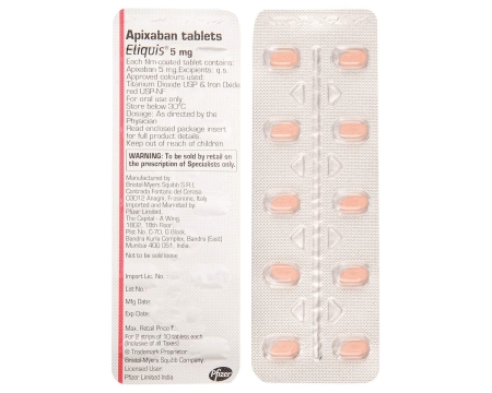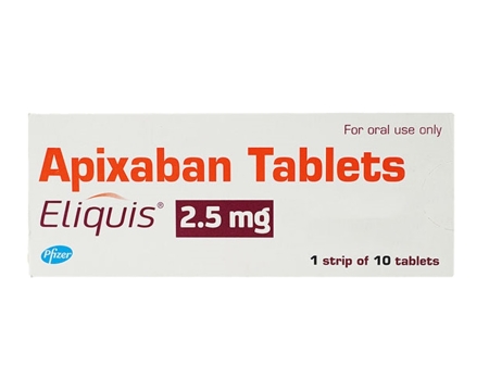 - För behandling av djup ventrombos förskrivs en dos på 10 mg två gånger dagligen under en vecka. Därefter justeras dosen till 5 mg två gånger dagligen under 3 månader. En dos på 2,5 mg två gånger dagligen används för att förebygga blodproppar;